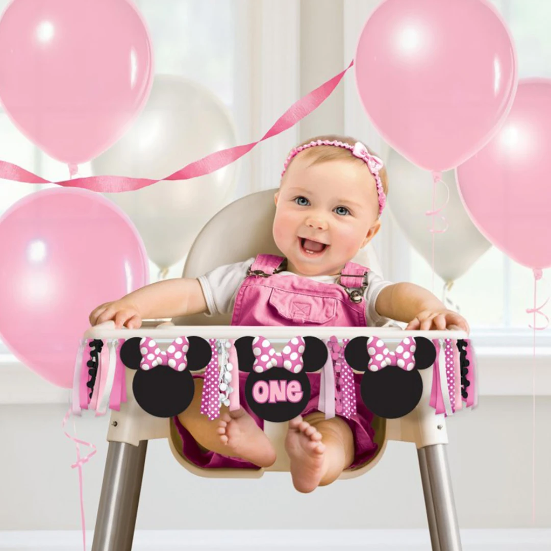 Enhance your child’s high chair with our Minnie Mouse Forever Deluxe High Chair Decoration ONE.