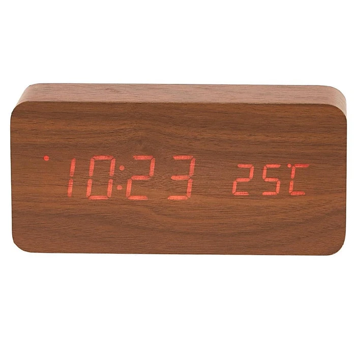 Theย Checkmate Spruce LED Wood Cuboid Alarm Clock 15×6.8×3.9cm Dark Brownย is a straightforward, lovely, and sophisticated option in black. A contemporary, thin, and straightforward clock that will appeal to every minimalist. It has a clean face, a sturdy black housing with a smooth wooden finish, a brilliant LED display, and all of this.