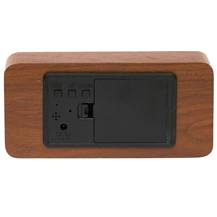- Power saving mode. Under power saving mode you can clap, make a noise or knock the desk near the clock to turn on the LED display for 10 seconds.