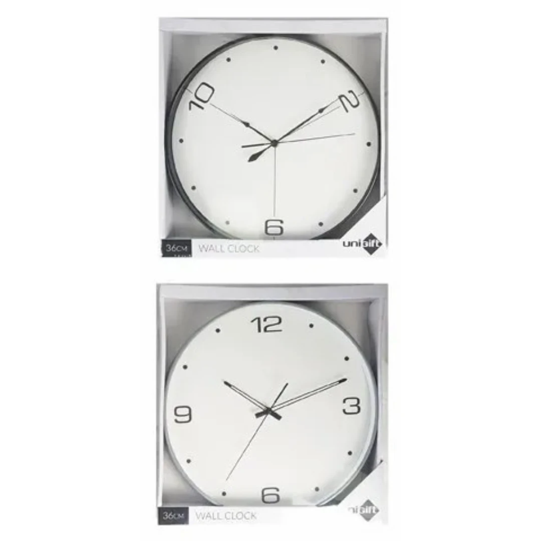 Add a bold and stylish touch to any room with the Classic Clock 36cm Black/White Assorted. This timepiece is available in two striking black and white designs, offering both classic elegance and contemporary flair. Perfect for larger spaces, this clock ensures you stay on time while enhancing your home or office decor with its simple yet sophisticated design.