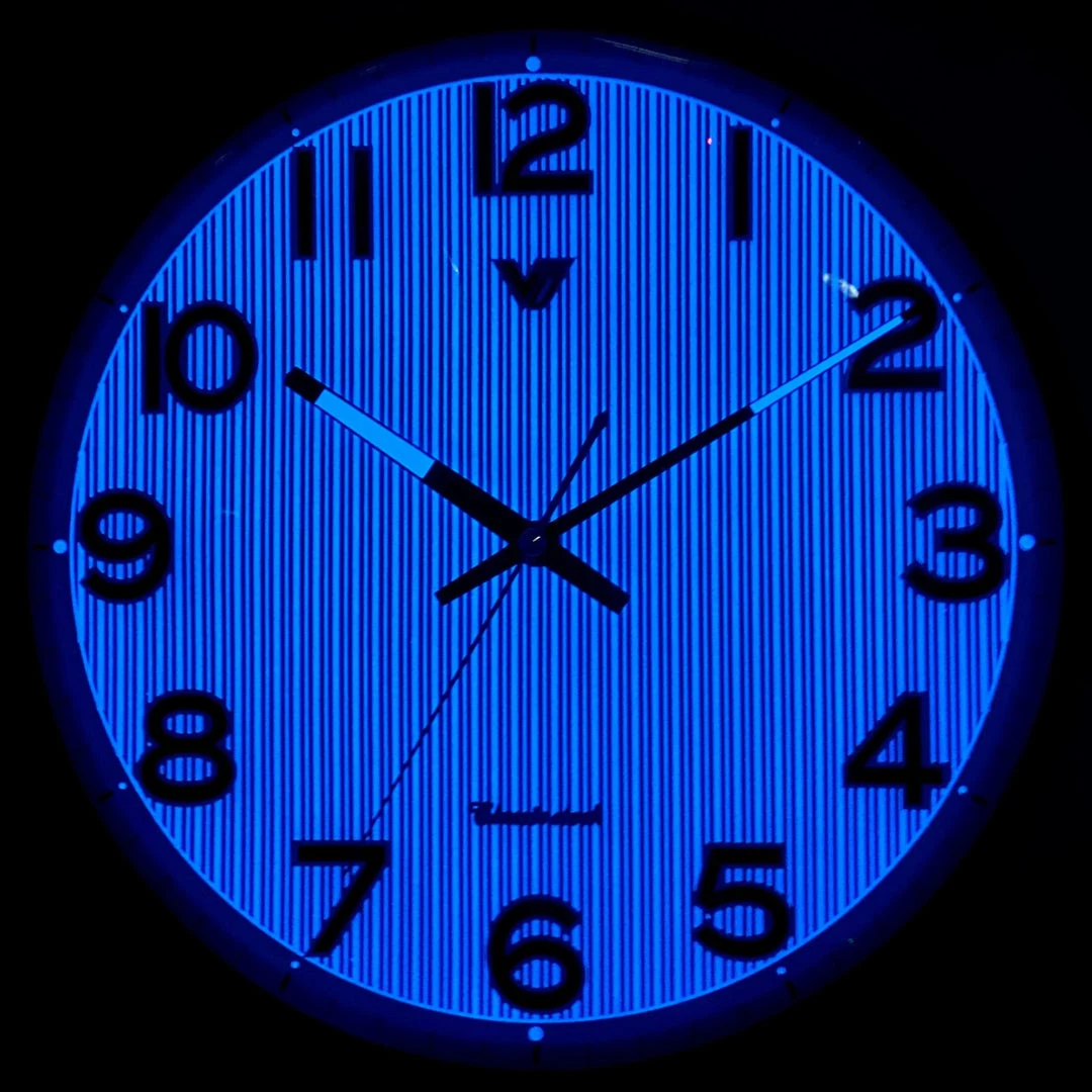 - Fluorescent blue glow in the dark face and hands (brightness depends on how much light they’ve been exposed to, and may not last all night)