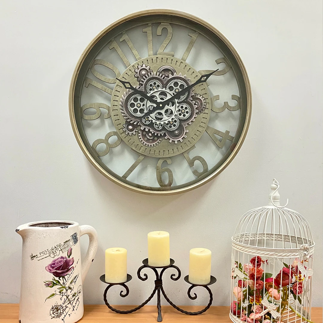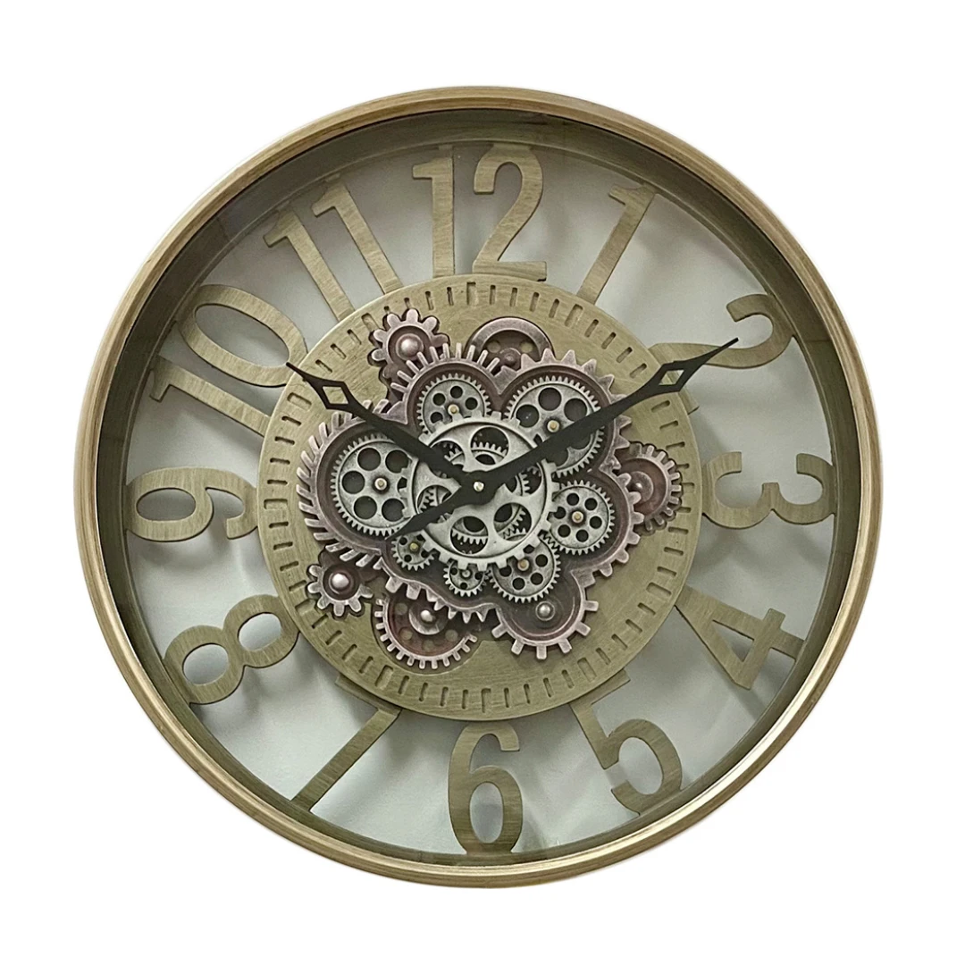 Crafted with a polished metal frame, the clock exudes a sense of luxury and sophistication. The combination of glossy finishes and meticulously designed gears creates a harmonious blend of modern elegance and mechanical intrigue, making it a perfect addition to upscale interiors.