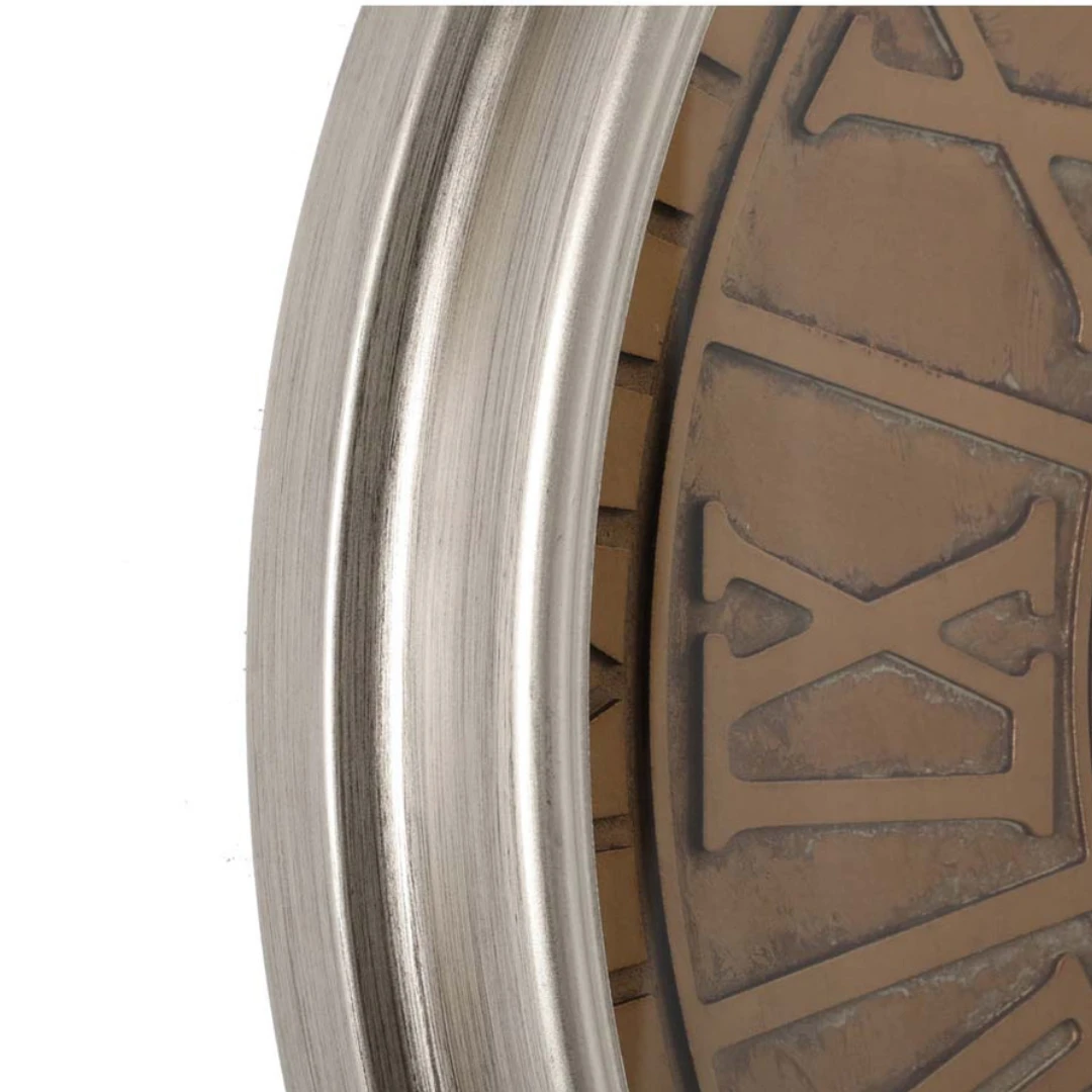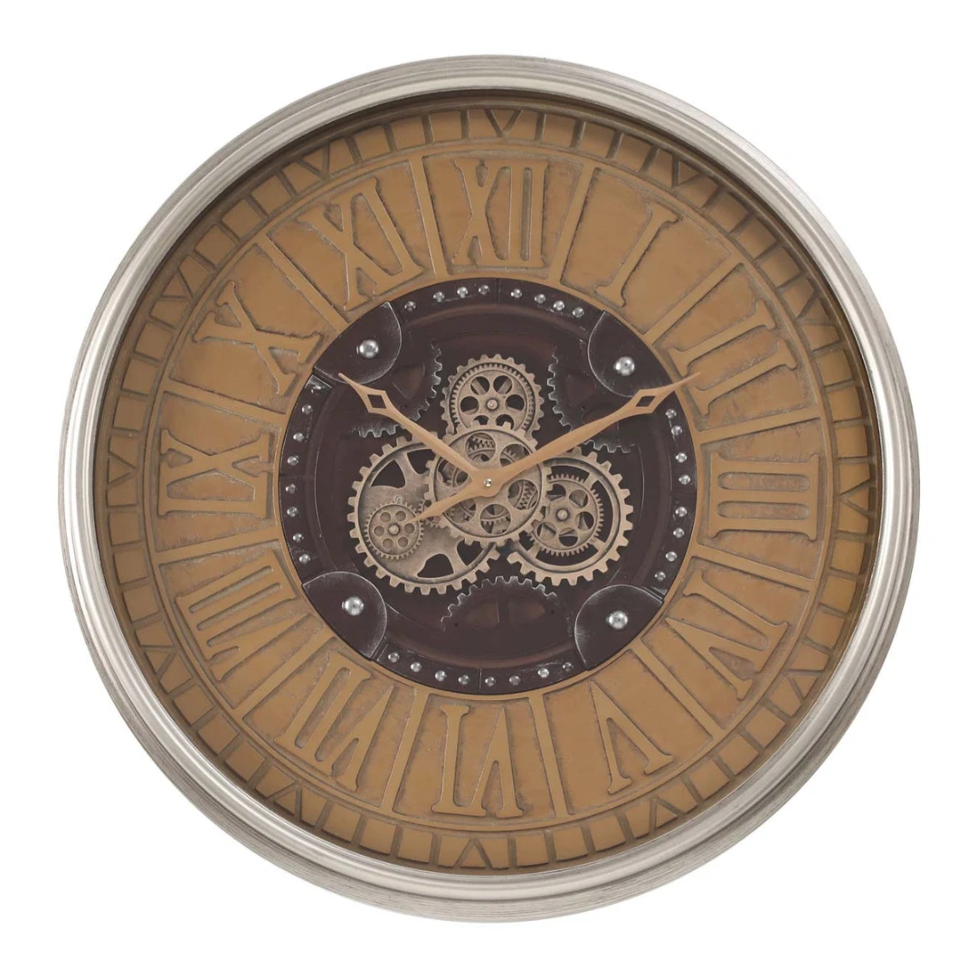 Elevate your wall dรฉcor with the Round Persian Exposed Gear Clock 80cm Rustic Silver. This oversized timepiece blends antique charm with industrial style, featuring a weathered silver finish, exposed gear detailing, and bold Roman numerals.