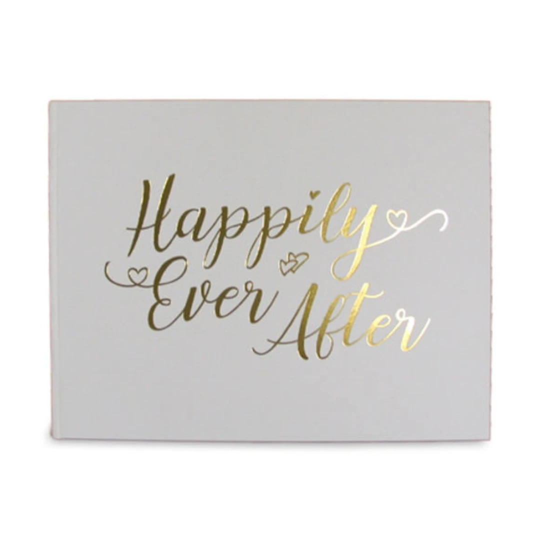 Capture the love and joy of your special day with the Wedding Guest Book Happily Ever After Gold/White. This elegant book features a timeless gold and white design, with the phrase “Happily Ever After” delicately embossed on the cover. Perfect for recording heartfelt messages and well wishes from your guests, this guest book adds a touch of sophistication to your wedding celebration.
